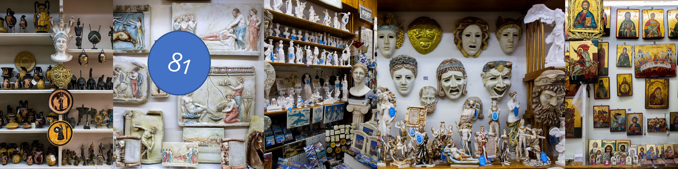 Από το 2012 επιλέγουμε για εσάς τα καλύτερα αναμνηστικά μέσα από μία μεγάλη ποικιλία και πάντα στις καλύτερες τιμές. Αγάλματα, αγγεία, εικόνες σε άριστη ποιότητα, ελληνικής κατασκευής καθώς και μουσειακά αντίγραφα με ιδιαίτερη έμφαση στην πιστότητα.